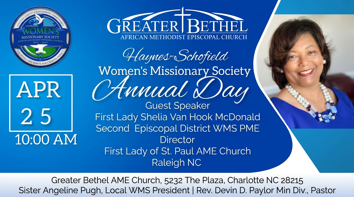 On behalf of Greater Bethel AME Church, I welcome you to our virtual community and invite you to join us in person.