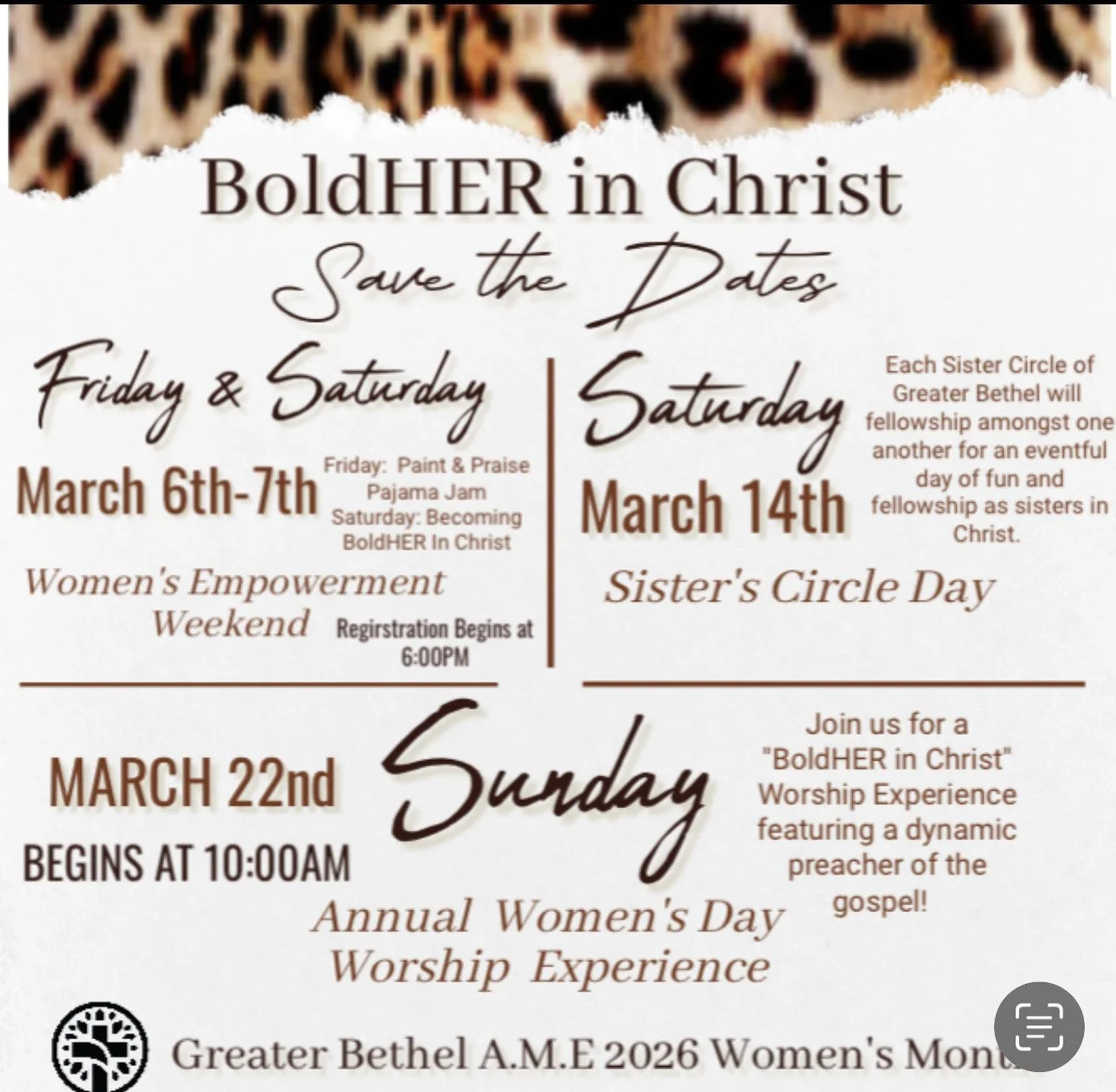 On behalf of Greater Bethel AME Church, I welcome you to our virtual community and invite you to join us in person.